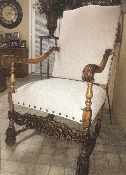 We also offer beautifully re-upholstered furniture by Classic House in our show rooms for purchase.